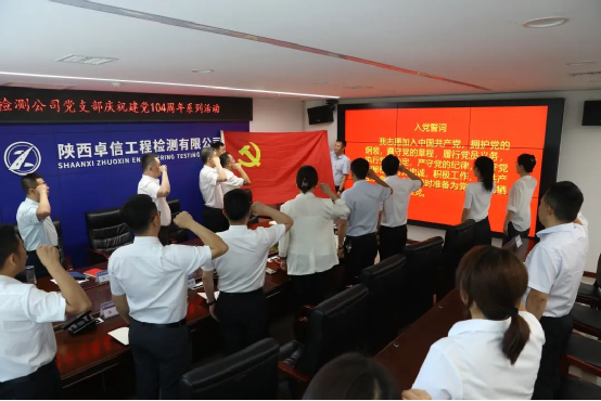 為慶祝中國共產黨成立104周年,深入推進作風建設,公司黨支部于7月1日組織開展了主題鮮明、內容豐富的系列慶祝活動。活動旨在教育引導全體黨員聽黨話、跟黨走,立足本職工作,為企業發展做出貢獻,并將貫徹落實中央八項規定精神學習教育推向深入。公司領導馬龍、陳吉強、張國勇、曹小軍出席活動。